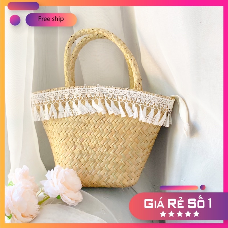 Túi Ví Nữ > Túi quai xách || Túi cói cỏ bàng đi biển tua rua size 20