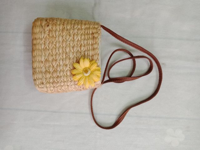 Túi cói hoa cúc họa mi được làm từ chất liệu bèo lục bình