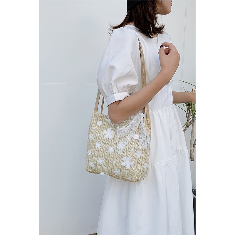 Giới thiệu Túi Cói Đi Biển Đi Chơi Họa Tiết Hoa Cúc Ren Siêu Dễ Thương TX14-Vigota