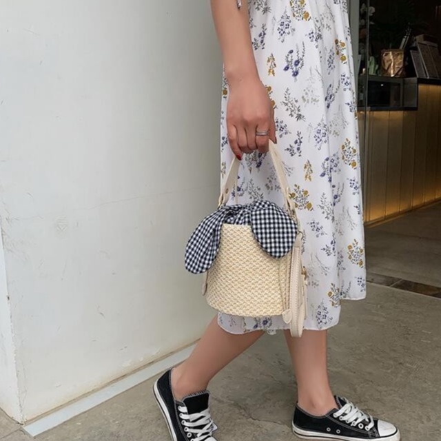 Giới thiệu Túi cói hình trụ tròn - vải lót caro - phong cách Vintage