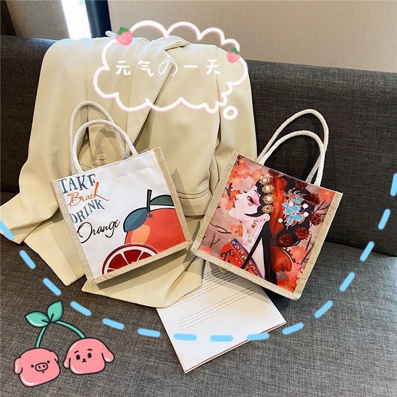 Túi Ví Nữ > Túi quai xách || Túi Cói Vintage Đi Biển Phong Cách Hàn Quốc Hoạ Tiết Hoạt Hình Siêu Đáng Yêu