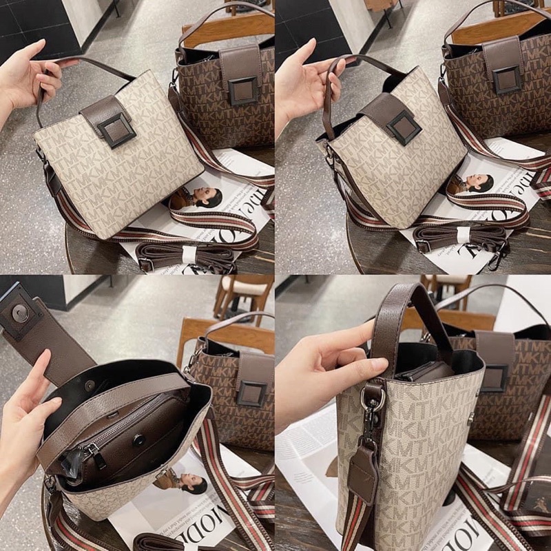 Túi Ví Nữ > Túi quai xách || TÚI CÔNG SỞ HOẠ TIẾT M.K NẮP VUÔNG