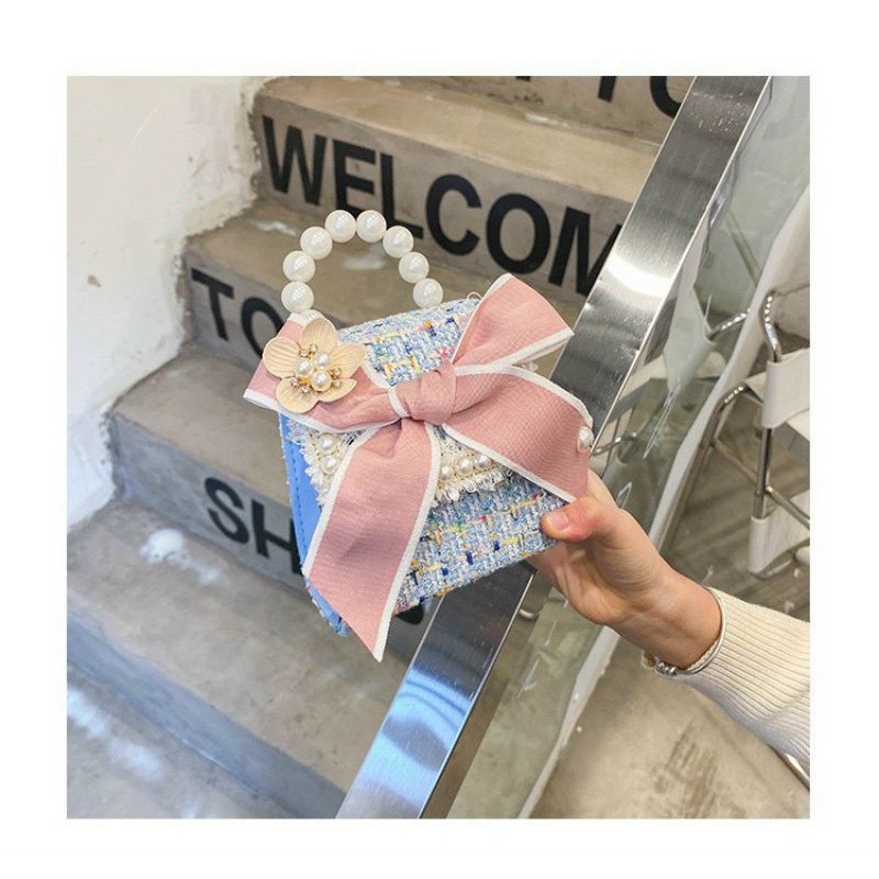 Túi Dạ Quai Ngọc Nơ Hồng Siêu Sang Chảnh Cho Bé