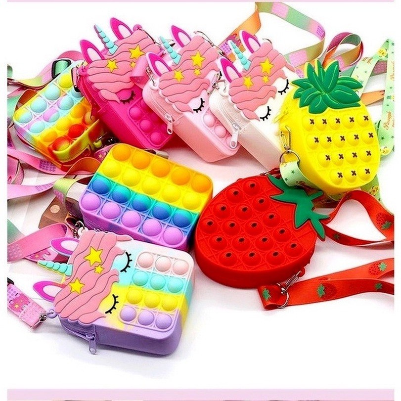 Túi đeo chéo bé gái hoạt hình anime hình chú kỳ lân, đồ chơi pop it, PTI08