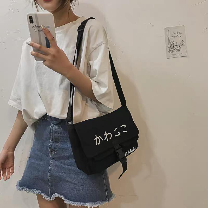Giới thiệu Túi Đeo Chéo Nam/ Nữ ERASHOP 074497 - Chữ Nhật Bản Thêu Nổi Đơn Giản, Trẻ Trung, Hot Trend Rẻ Đẹp