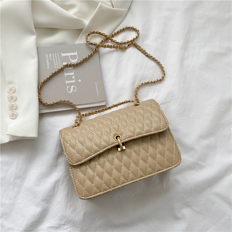 Giới thiệu Túi đeo chéo nữ nhiều ngăn dây đôi có thể đeo vai da trần trám dây da phối xích GL112