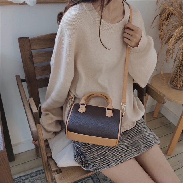 Túi Ví Nữ > Túi đeo chéo & Túi đeo vai || Túi Đeo chéo Royak BAG độc lạ chất liệu da màu da mix nâu dễ phối đồ - túi hộp rộng kèm ảnh thật