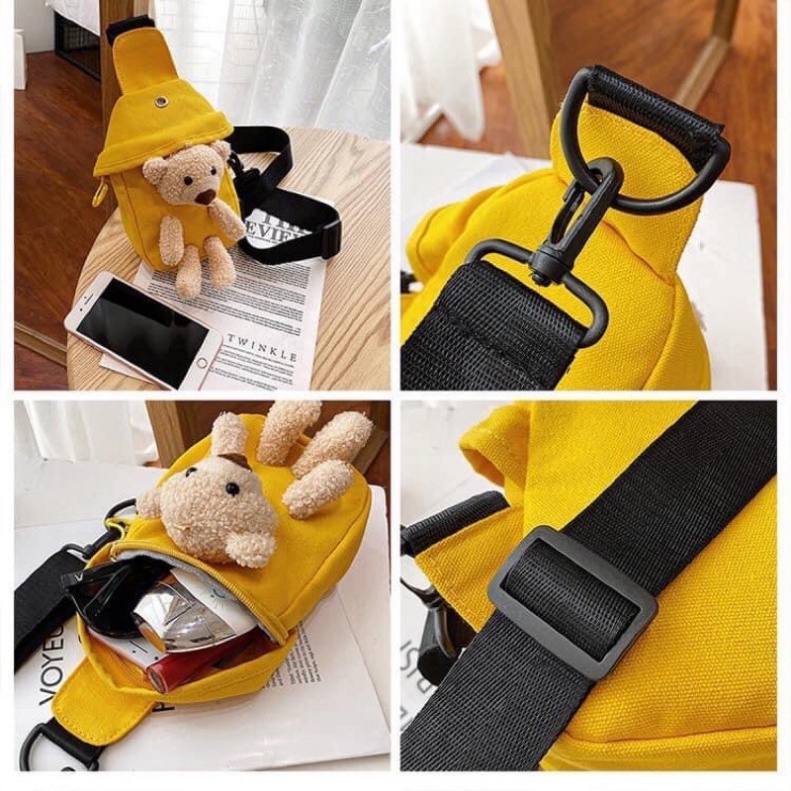 Giới thiệu Túi đeo chéoFREESHIPTúi đeo chéo hình gấu nhồi bông phong cách Hàn Quốc