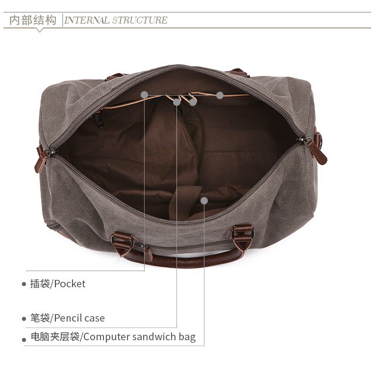 Du lịch & Hành lý > Túi du lịch > Túi trống || Túi du lịch dạng túi trống T110 47x29x20cm đựng đồ hành lý vali phối da(Nâu-Rêu-Đen-Xám)