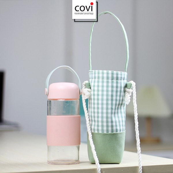 Túi Đựng Bình Nước Bình Giữ Nhiệt Màu Caro Vải Canvas Thương Hiệu Covi
