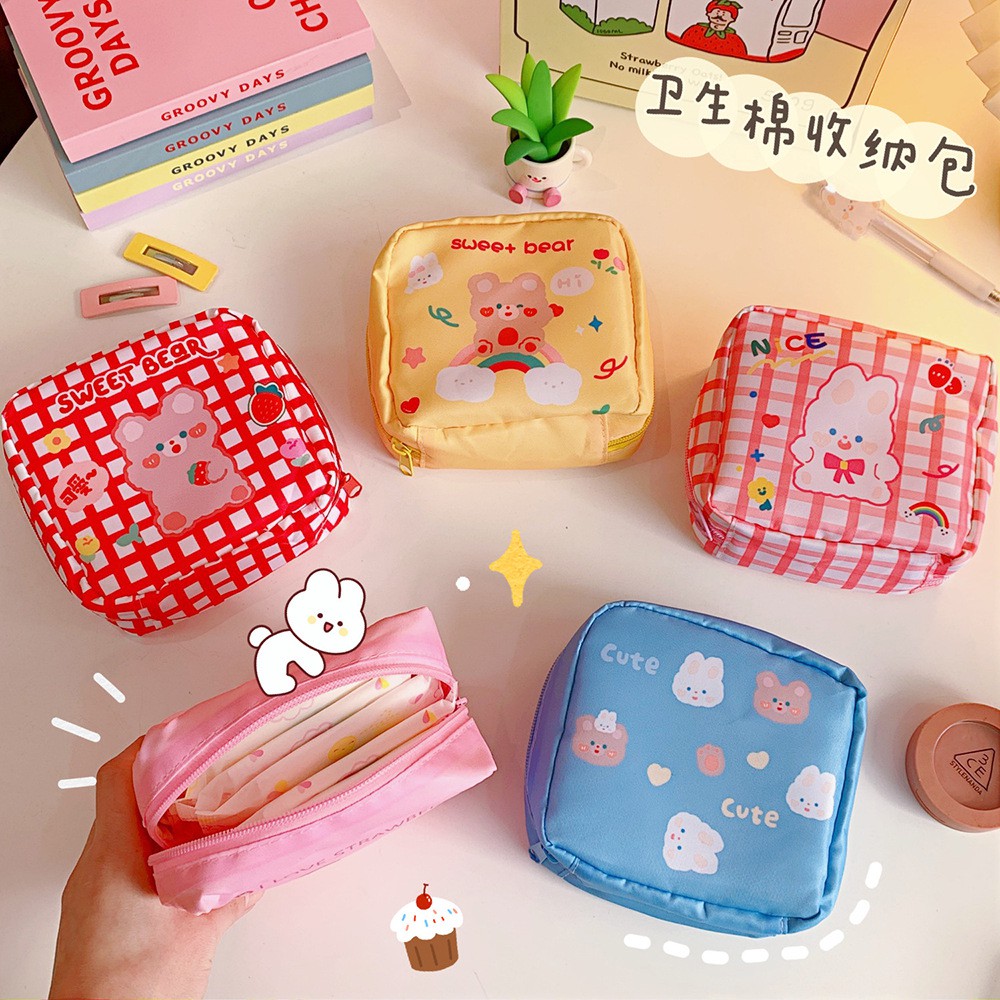 Giới thiệu Túi đựng đồ cá nhân/ băng vệ sinh cho bạn gái, đa năng tiện lợi, họa tiết dễ thương size 14