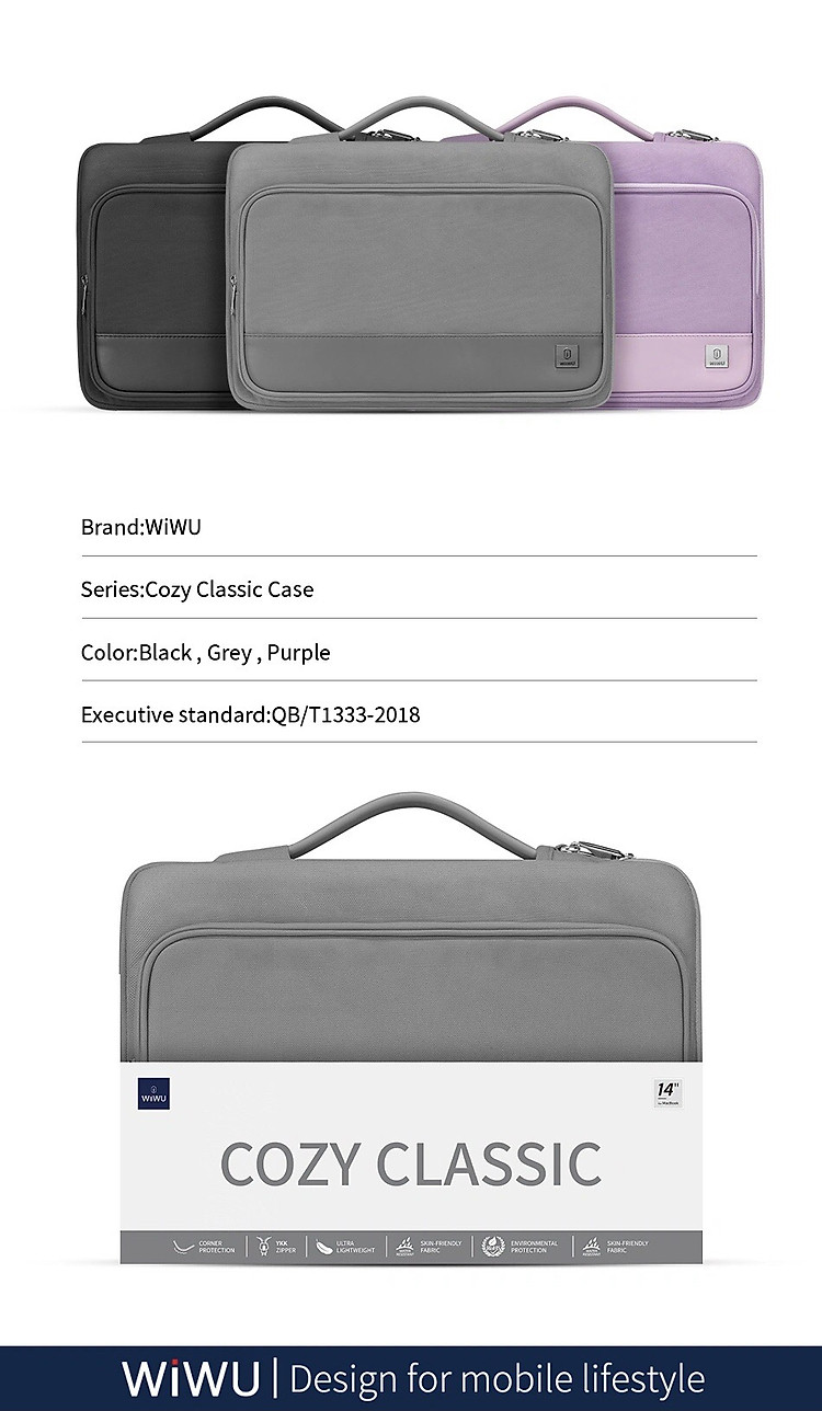 Túi đựng máy tính xách tay chống nước Wi WU Cozy Classic Polyester chống rơi thiết kế túi xách tay