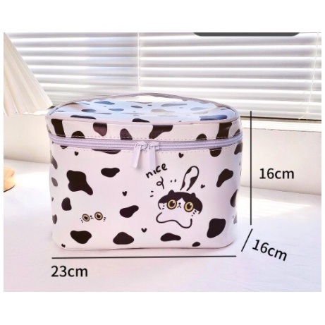 Giới thiệu Túi đựng mỹ phẩm họa tiết Bò Sữa hot trend kiểu dáng chất liệu Da PU chống thấm nước