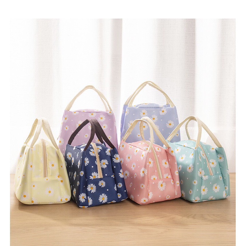 Túi giữ nhiệt hoa cúc đựng hộp cơm văn phòng chống nước có lớp giấy bạc dày dặn giữ nhiệt cực lâu