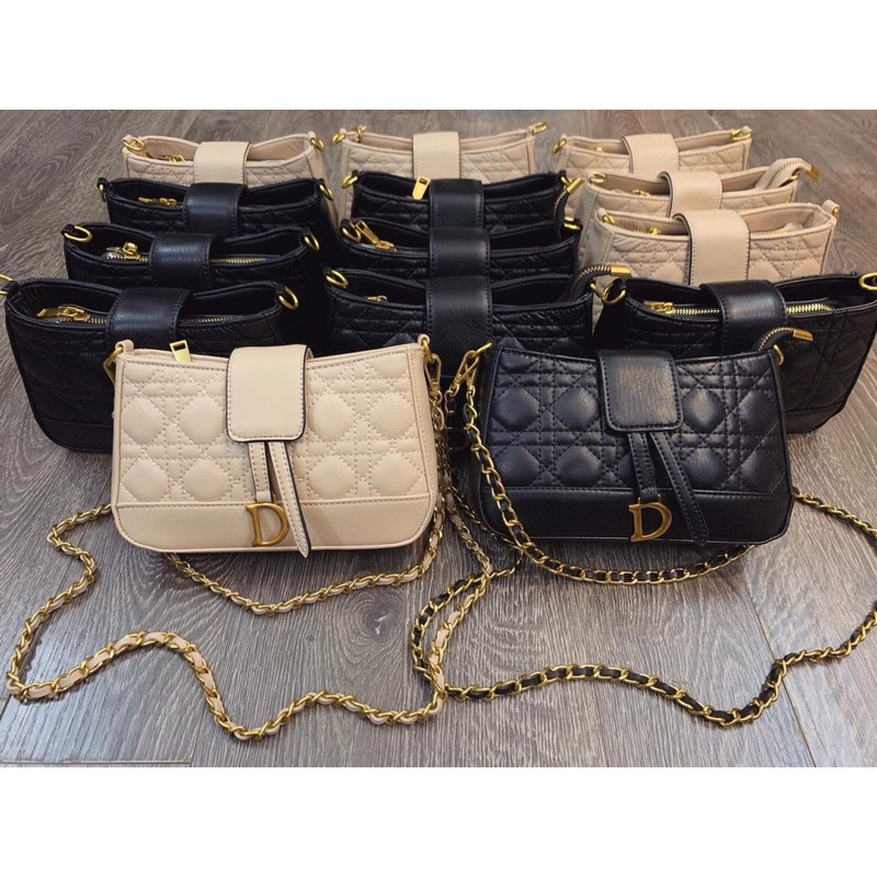🔥𝐓𝐇𝐎̂𝐍𝐆 𝐓𝐈𝐍 𝐂𝐇𝐈 𝐓𝐈𝐄̂́𝐓 𝐒𝐀̉𝐍 𝐏𝐇𝐀̂̉𝐌 : TÚI KẸP NÁCH 2 DÂY ĐEO CHÉO - TÚI XÁCH NỮ HÌNH CHỮ D 3 MÀU ĐEN TRẮNG BE SIÊU ĐẸP