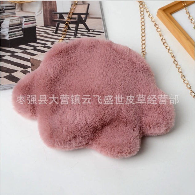 Túi lông đeo chéo nữ hình chân mèo dễ thương
