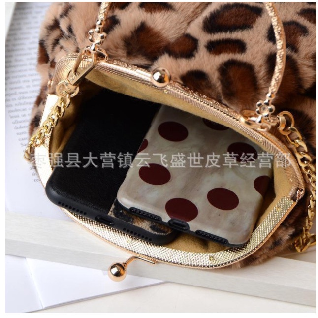 Túi Ví Nữ > Túi đeo chéo & Túi đeo vai || Túi lông đeo chéo tròn tai thỏ da báo thời trang
