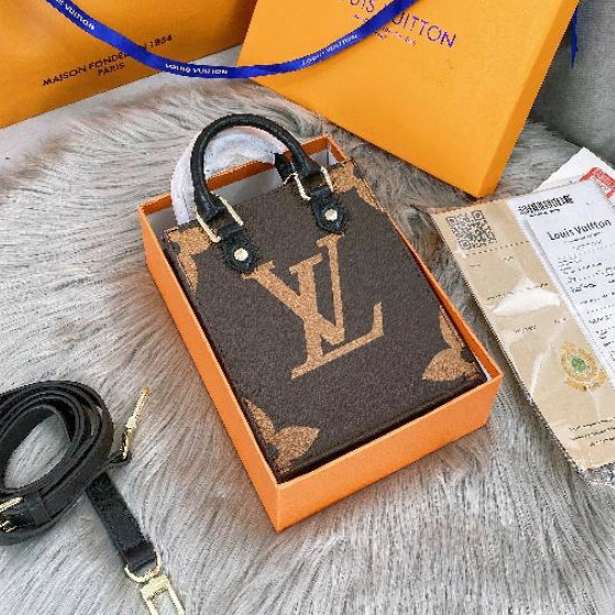 Túi Ví Nữ > Túi tote || Túi LV mini tote dáng dọc hoạ tiết đen nâu hồng