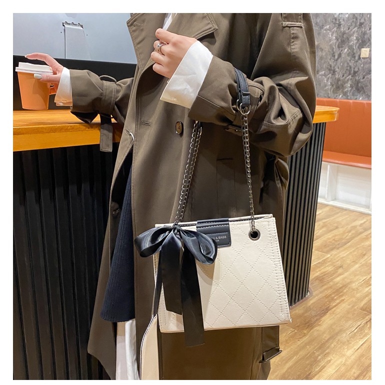 Giới thiệu Túi Nữ Đeo Vái Kẹp Nách Đính Nơ Lụa Trần Chỉ Ô Trám Kiểu Dáng Thời Trang 2021 Phong cách Vintine