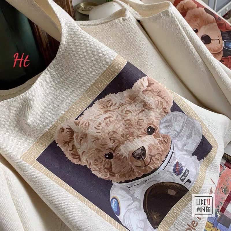 túi bên shop phuongmyt chất Kaki màu trắng in gấu sành điệu