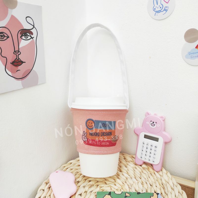 Giới thiệu Túi Quai Vải Xách HIDOKI DESIGN Đựng Ly Giữ Nhiệt 1 Lít, Ly Trà Sữa Dưới 450ml