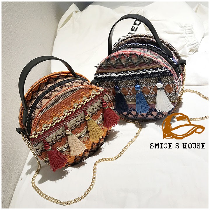 Túi Ví Nữ > Túi đeo chéo & Túi đeo vai || TÚI THỔ CẨM CÓI ĐEO CHÉO FORM TRÒN ĐI BIỂN ĐI CHƠI
