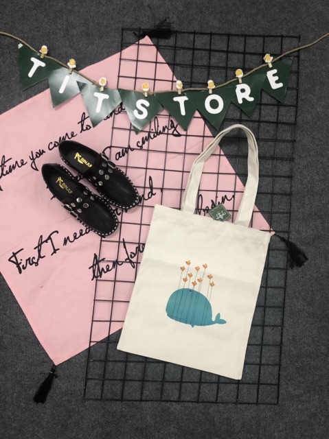 Túi tote cá voi ulzzang (có sẵn, hình thật)
