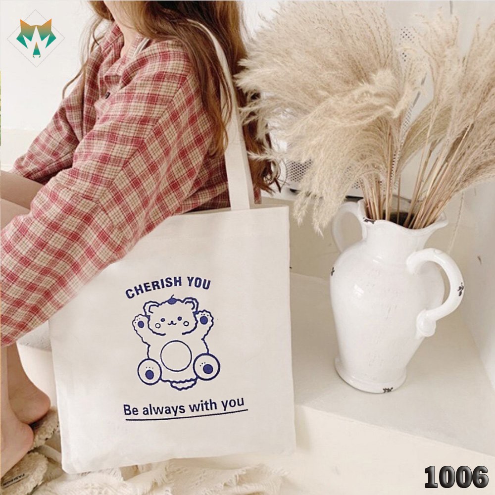 Giới thiệu TÚI TOTE TRẮNG CHẤT VẢI CANVAS 1006 460 GẤU CHERISH YOU HÀNG CHUẨN ĐẸP