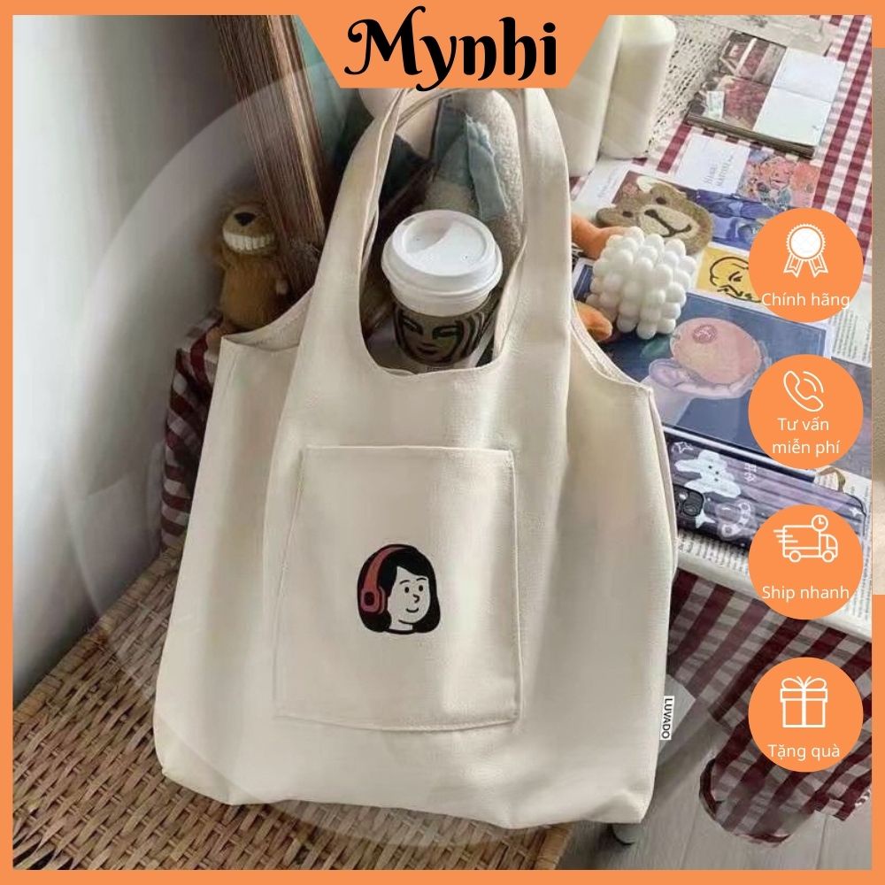 Túi tote, túi vải canvas giá rẻ thời trang đeo vai liền thân có ngăn ngoài in hoạ tiết SMN250
