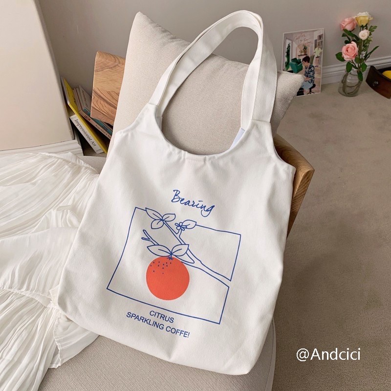 Giới thiệu Túi Tote Vải Bố Đựng Đồ Canvas Đeo Chéo Hàn Quốc Hình Cam Đào