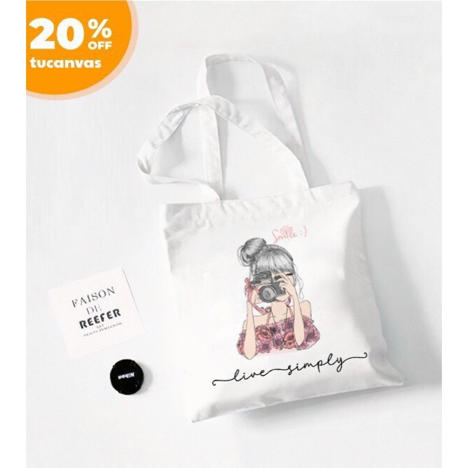 Giới thiệu Túi tote vải canvas họa tiết cô gái dễ thương có khóa miệng