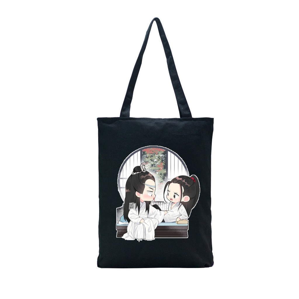 Túi Ví Nam > Túi tote || Túi tote vải đen in hình Bác Quân Nhất Tiêu Trần Tình Lệnh chibi M01