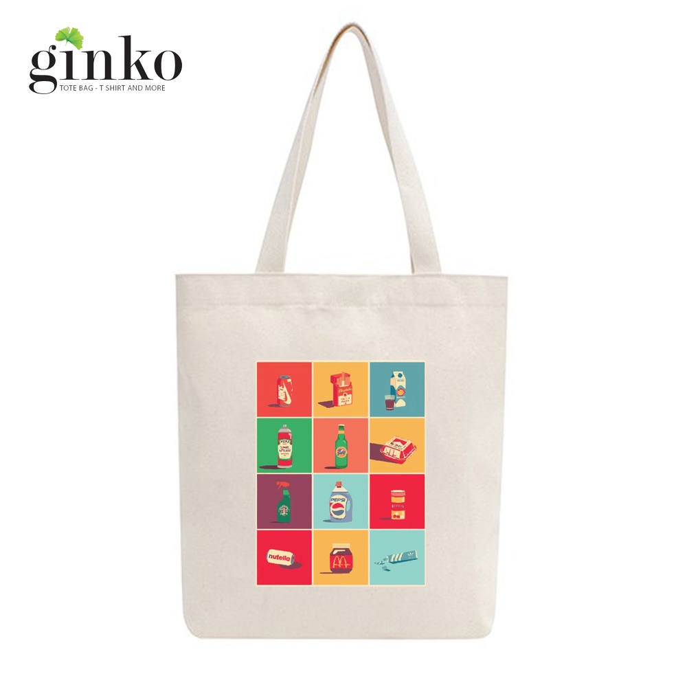 Giới thiệu Túi tote vải mộc GINKO dây kéo in hình pop art retro M107