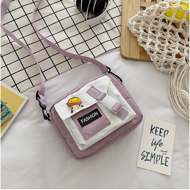 - Tên sản phẩm: Túi vải canvas đeo chéo hoạ tiết màu Đen/ Tím/ Xanh/ Vàng
