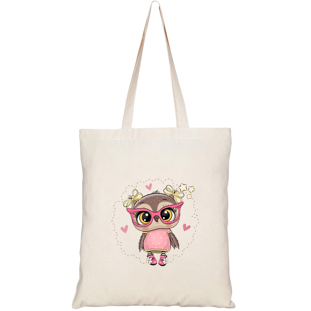 Giới thiệu Túi vải tote canvas HTFashion in hình cute cartoon owl pink eyeglasses HT364