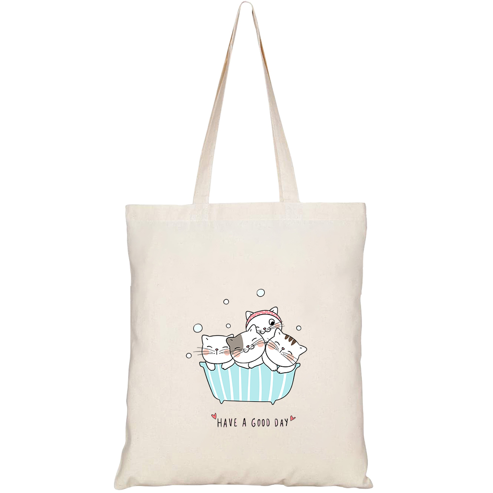 Giới thiệu Túi vải tote canvas HTFashion in hình họa tiết Mèo tắm HT51