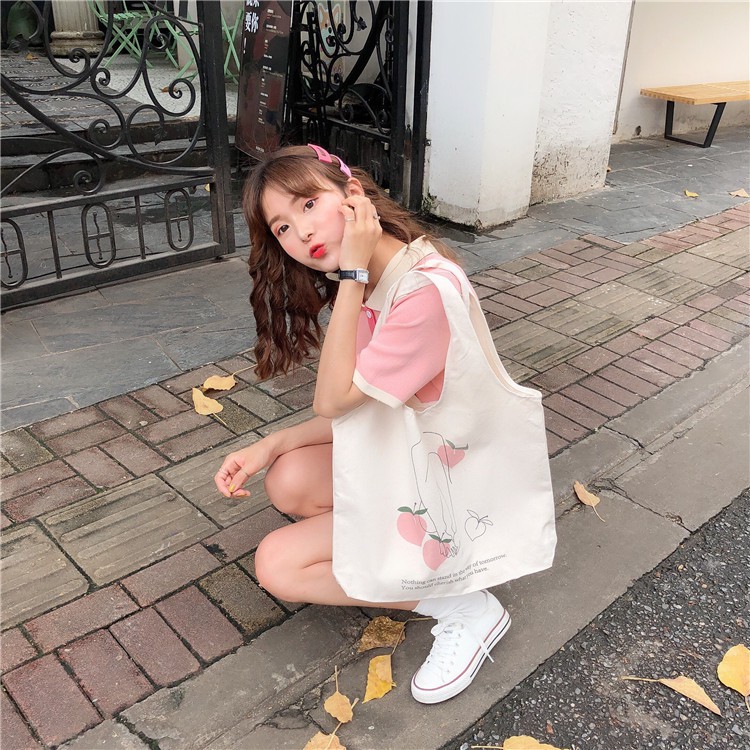 Giới thiệu Túi Vải Tote Nàng Thơ Và Quả Đào Cỡ Lớn P1400