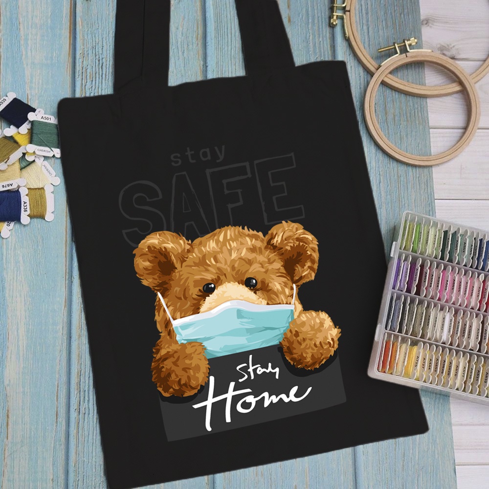 Giới thiệu Túi vải, túi Tote (màu đen) TEDDY ART - Mẫu 6 vải canvas dày đẹp cho nữ có khóa miệng đi học đi chơi.