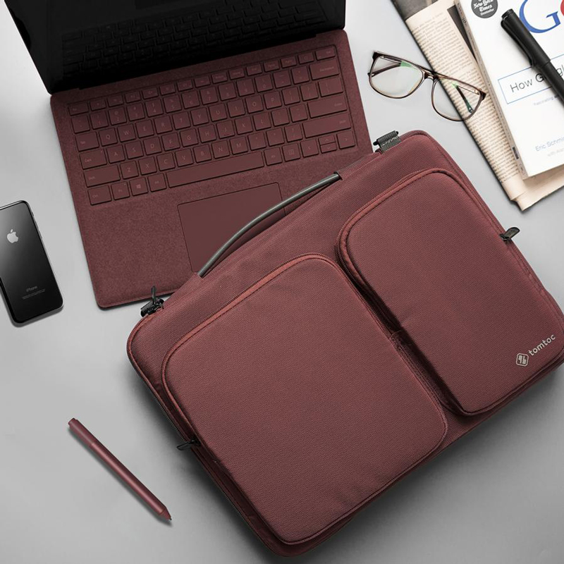 Túi xách chính hãng TOMTOC 360° Shoulder Bags dành cho Macbook Pro 13 inch với bên ngoài bằng chất liệu Polyester và Nylon kháng nước, bên trong túi trang bị thêm lớp lông mềm mượt giúp tăng sự đàn hồi, bảo vệ hoàn hảo chống va đập và trầy xước cho thiết bị của bạn.