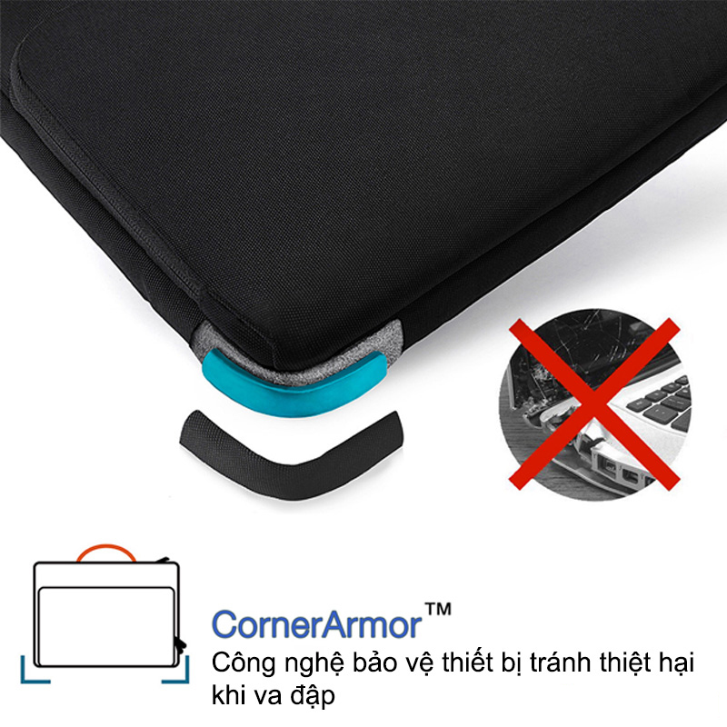 Túi A14-E sử dụng công nghệ tiên tiến CornerArmor của Hoa Kỳ bên trong túi chống sốc có một lớp đệm khí bảo vệ 360°. Đây là điều mà khách hàng tìm đến Tomtoc bởi kết cấu chống sốc hoàn hảo giúp thiết bị của bạn hoàn toàn có thể được bảo vệ khi xảy ra vấn đề va chạm.