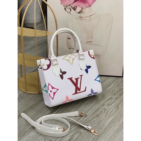 Giới thiệu Túi xách công sở in hoạ tiết eo vì cầu vồng( size 25cm/màu hồng phối xanh 30cm)