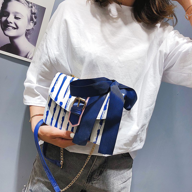 Túi Ví Nữ > Túi đeo chéo & Túi đeo vai || Túi xách đeo chéo Grafity phối màu sơn đính kèm nơ Hàn Quốc A014