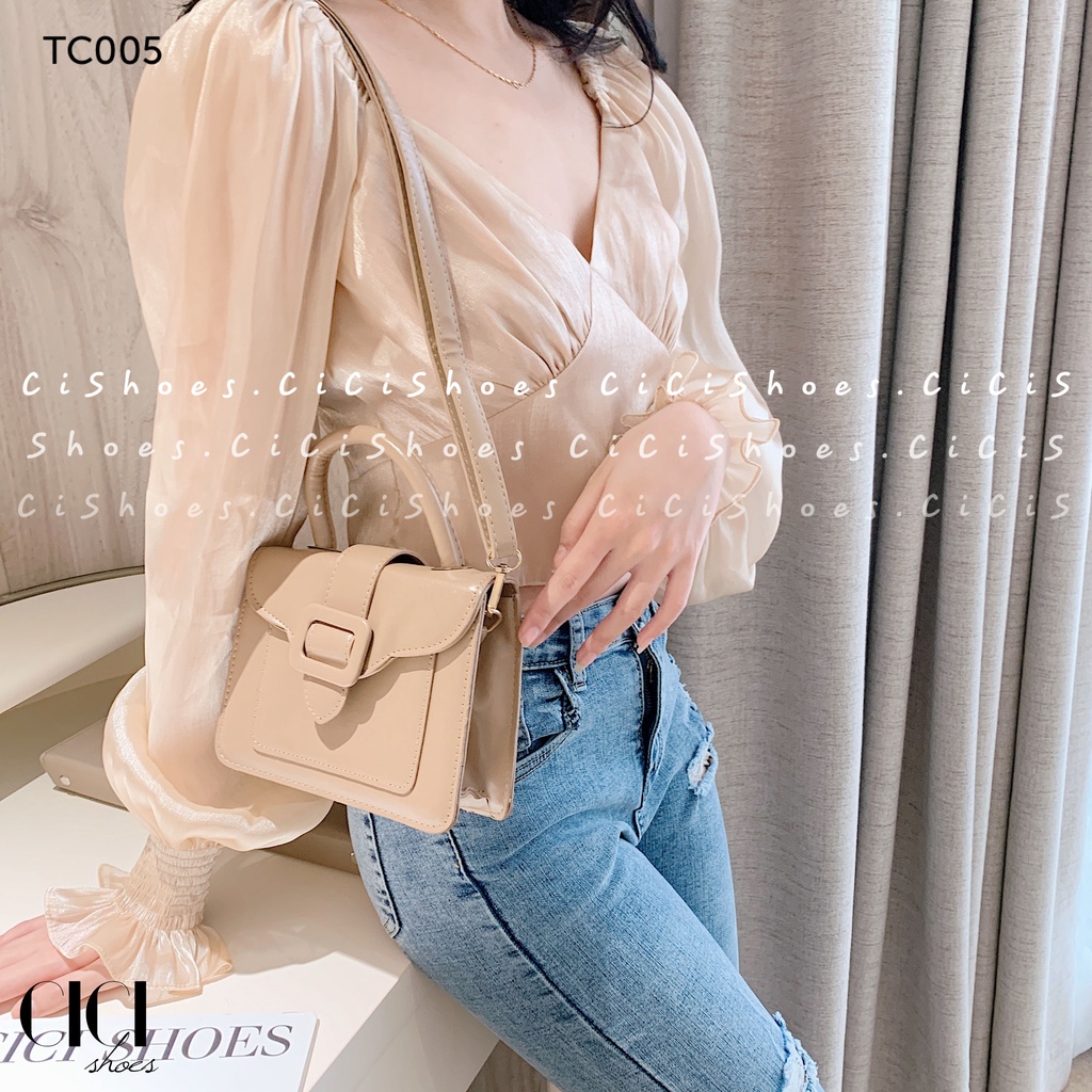 Túi xách nữ CiCi Shoes, túi vuông quai xách da tròn khoá nhựa - TC005