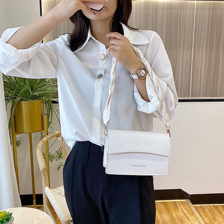 TÚI XÁCH NỮ ĐEO CHÉO VÂN RẮN JINPIN DA PU MỀM KIỂU DÁNG HÀN QUỐC TN 88