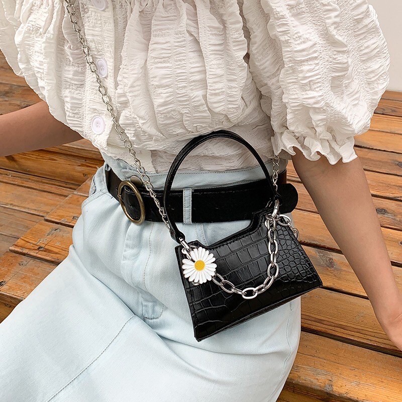 Giới thiệu Túi Xách Nữ FREESHIP Túi Đeo Chéo Nữ Mini Hoa Cúc size 15cm kèm dây đeo xích siêu hot HH700