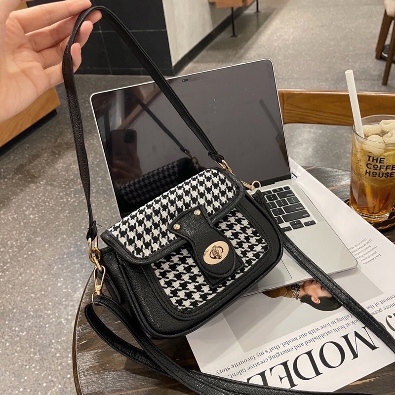 Giới thiệu Túi xách nữ kẹp nách đeo chéo đeo vai vân caro khoá xoay phong cách hàn quốc