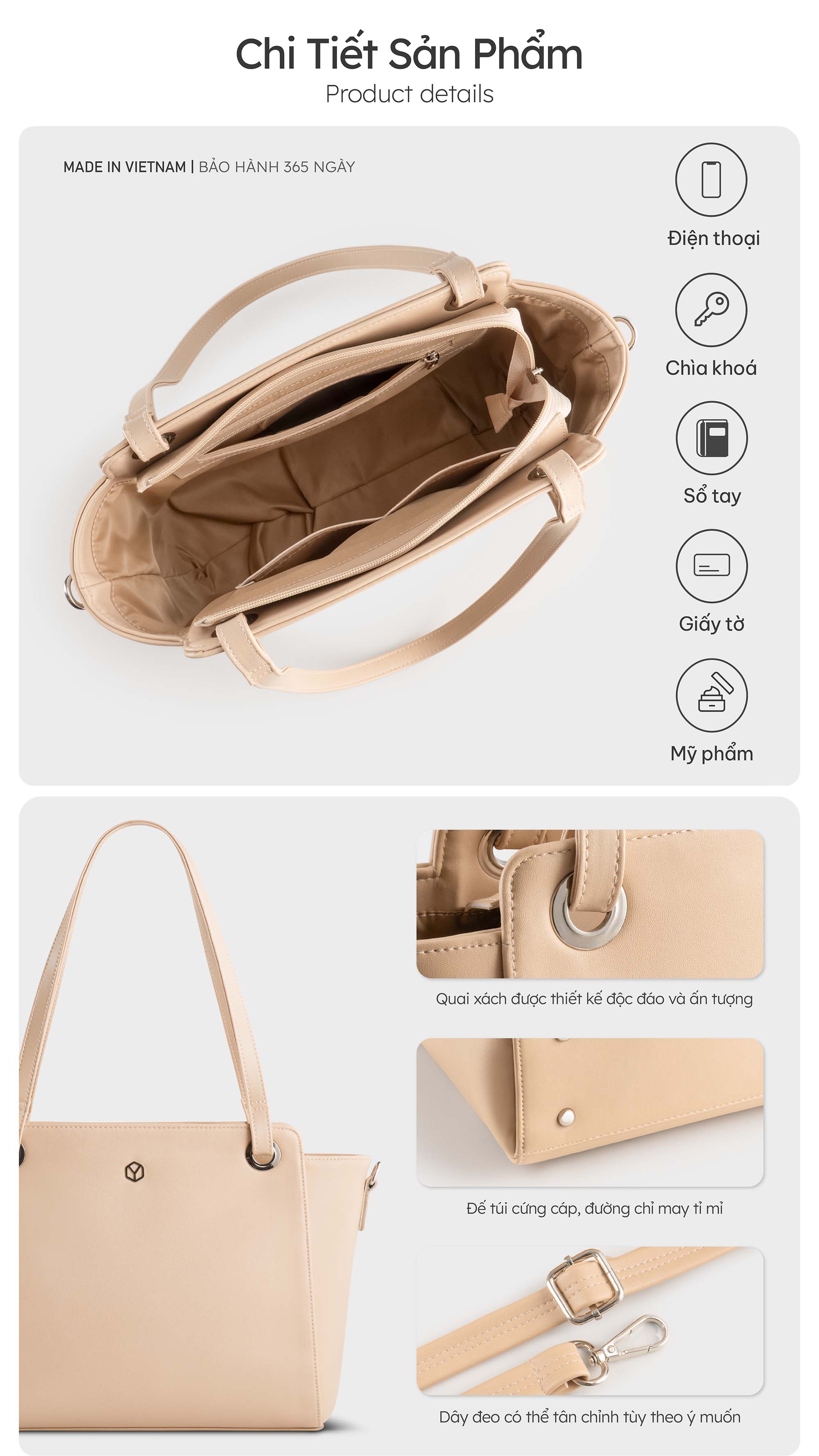 - Công dụng: Đựng vừa giấy A5, sổ tay, mỹ phẩm, vật dụng cần thiết khác,...