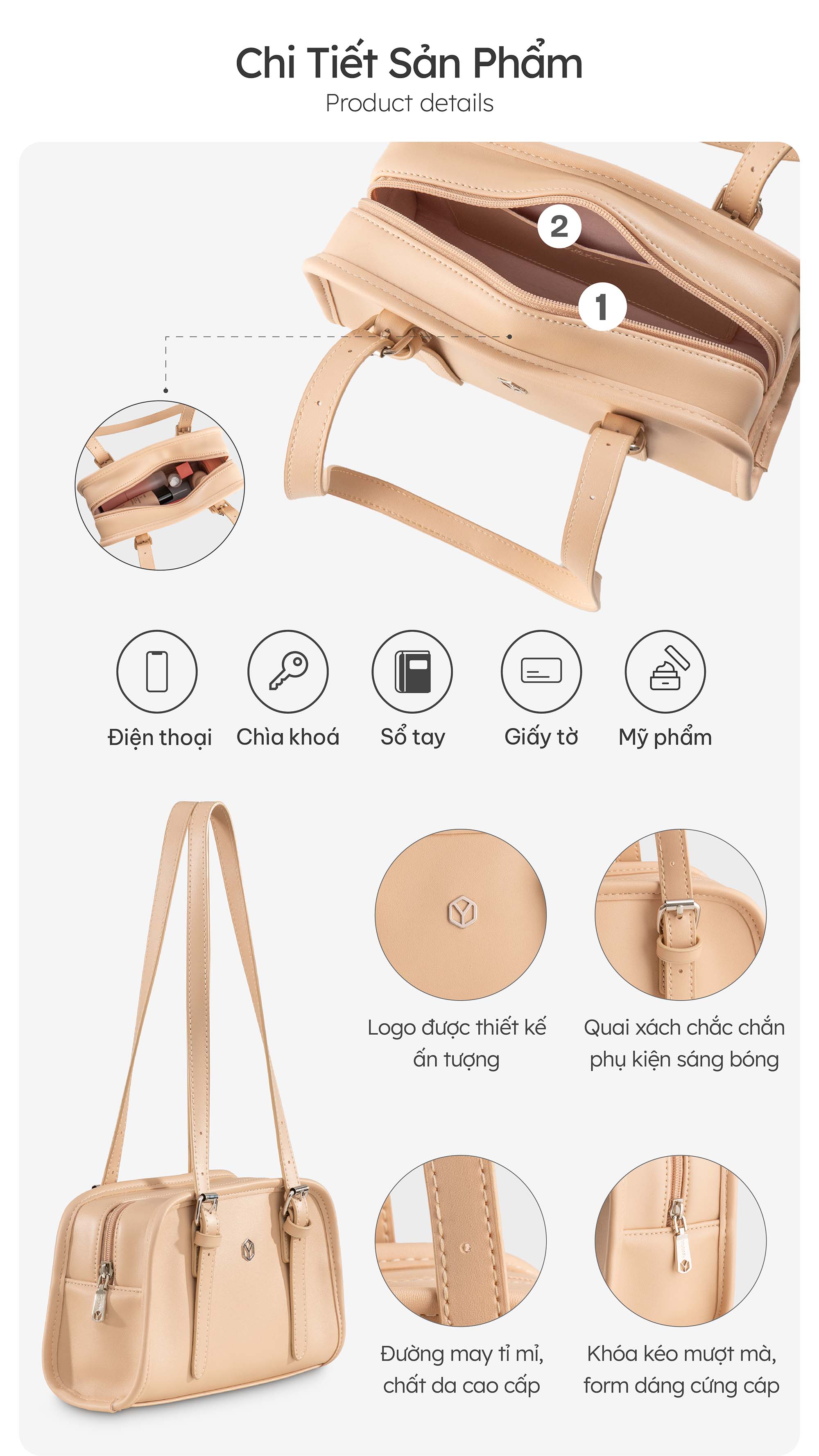 - Công dụng: Đựng tiền, điện thoại, son, phấn, chìa khóa, CCCD …