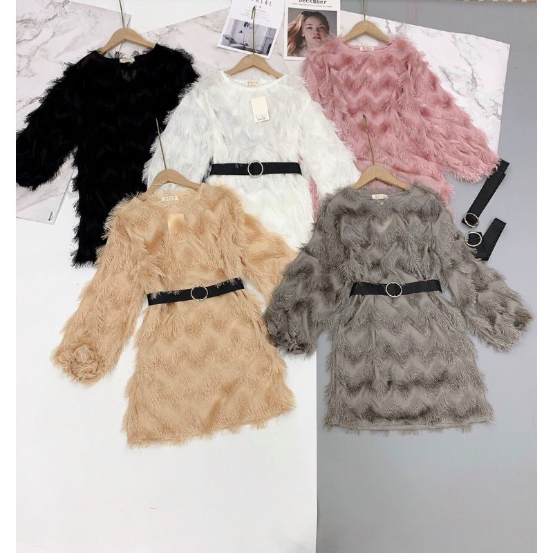 Thời Trang Nữ > Áo > Khác || Váy lông sóng kèm đai hàng QC