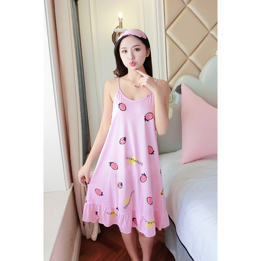Thời Trang Nữ > Đồ ngủ > Váy ngủ || Váy 2s suông chữ A chân bèo mặc nhà, váy hai dây ngủ bèo nhún thoáng mát mềm mại thấm hút tốt.